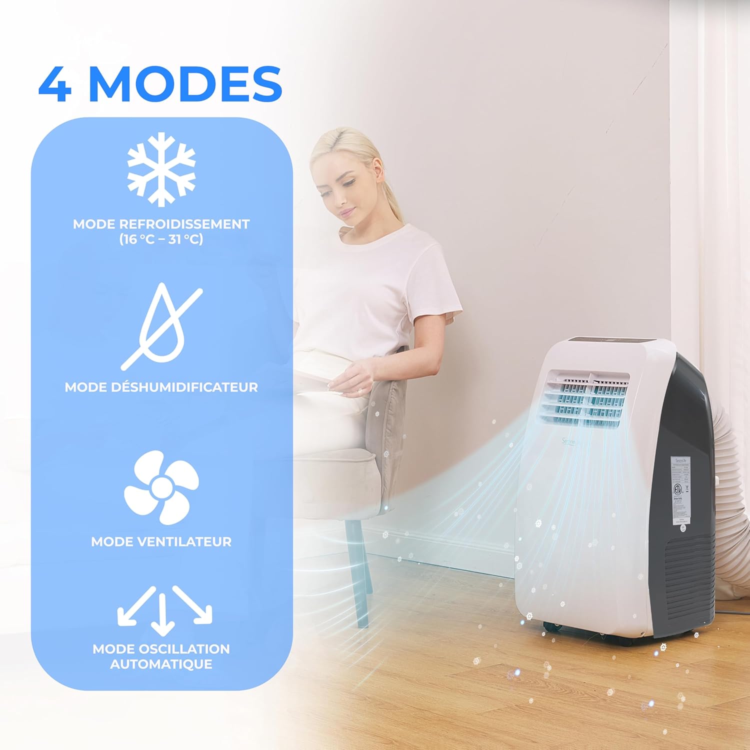 Ce climatiseur n’est pas qu’un simple appareil de refroidissement. Avec ses trois modes de fonctionnement, vous disposez d’une flexibilité inégalée. Que vous souhaitiez rafraîchir l’air, déshumidifier votre espace ou simplement profiter d’un mode ventilateur, ce climatiseur répond à toutes vos attentes. De plus, son mode oscillant automatique permet une circulation d’air optimale, vous garantissant une fraîcheur homogène dans toute la pièce.